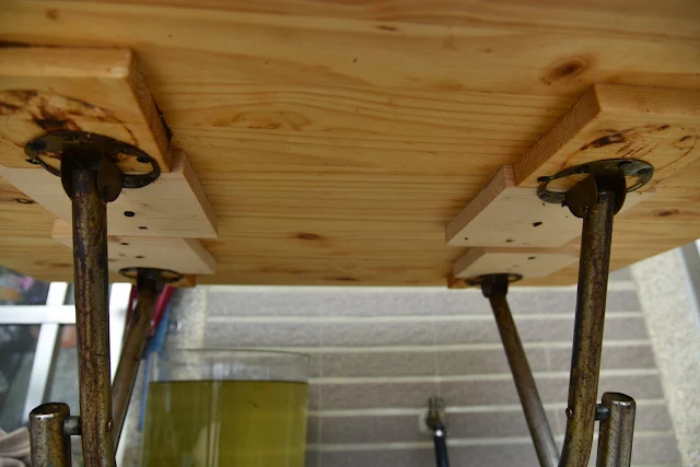 趕緊裁了四塊木頭補上,摺疊桌要收得起來,鎖的時候一定要先打平才能抓準確的位置,不然就會像我這樣了